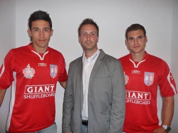 Daniel Gomez Mesa, Cseresznyés Péter sportigazgató és Alex Schleer (forrás: veszpremfc.hu)