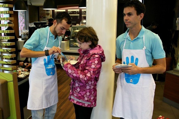 A veszprémi emberek segítőkészségét mutatja, hogy a nap végére megteltek az étterem üvegfalai a támogatást jelző, tenyérmintájú matricákkal, valamint az adománygyűjtő perselyek is.