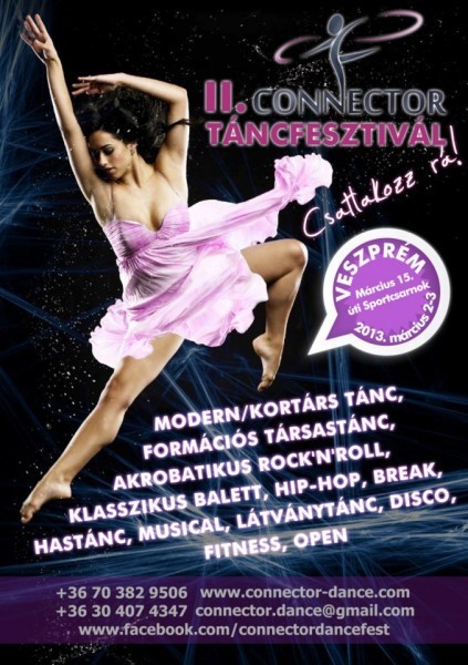 Beszélt arról is, hogy idén négynapos nyári kurzus követi a Connector Táncfesztivált: július 5. és 8. között modern tánc, társastánc, hastánc, hip-hop szerepel a programban.