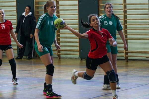 A juniorok már szorosabb első félidőt játszottak a kisalföldiekkel. A hazaiak kisebb technikai hibákat is vétettek és ez nem okozott gondot nekik a 13. percben már 9:5 volt az állás. Szita Katalin könnyen szerzett góljai, Hamburger Judit és Farkas Evelin találataival a félidő végére már 14:10-et mutatott az eredményjelző.