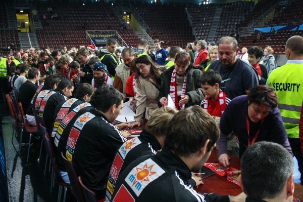 A meccs után dedikálást szerveztek a szurkolók részére, mindenki megtalálta a maga kedvencét, vagy akár az egész csapattal is aláírathatta MKB-s ereklyéit, a férfiak nagy örömére pedig ingyen sörrel is kedveskedtek a szurkolóknak.