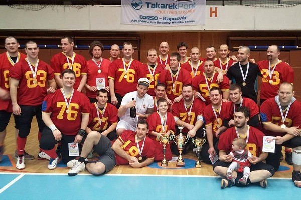 Három kupával térhetett haza a Kurucz-Jánvári edzőpáros által irányított Veszprém Wildfires csapata: az első helyért járó serleggel, a vándorserleggel, és a legjobb védőnek járóval, amit Szabó Péter kapott meg. (Fotó: Veszprém Wildfires)