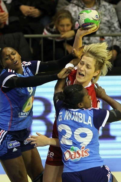 Remekül kezdett a magyar csapat, Szucsánszki és Kovacsics góljaival a 9. percben már 6-3-ra vezetett, de lassan magukhoz tértek a vendégek, és megkezdték a felzárkózást. Időkérésük után pedig valósággal állva hagyták ellenfelüket: a 17. percben már 6-6 volt az állás, a 25. percben pedig 6-10. A magyarok negyedórán át nem lőttek gólt, sok volt a kimaradt ziccer, vagy Glauser védett remekül, ám tény: a kemény francia védőfal sokáig áthatolhatatlan volt Tomoriék számára. Németh András időkérését követőn Szucsánszki törte meg a kínosan hosszú gólcsendet, de a szünetben örülni kellett annak is, hogy "csak" 13-10-re vezettek a vendégek.