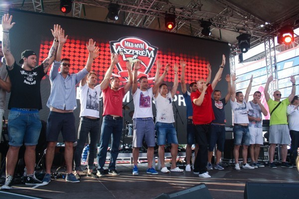 A Veszprém Aréna előtti téren köszöntötték a Kölnből ezüstéremmel hazatért MKB-MVM Veszprém játékosait és a technikai stábot. Sokféle érzelem látszódott az arcokon, Gulyás Péter és Iváncsik Gergő arcára mérhetetlen öröm és boldogság ült ki, a két szélső vezényelte a közönséget a rigmusok éneklése közben, Nagy László könnyekig meghatódott, Mikler Roland viszont még láthatólag nem tudta túltenni magát a Barcelona elleni vesztes mérkőzésen. A Carlos Ruesga kivételével, aki igazoltan hiányzott, hiszen a múlt héten műtötték térdét, és akit külön éljenzett a tömeg jó egészséget kívánva, mindenki megjelent.