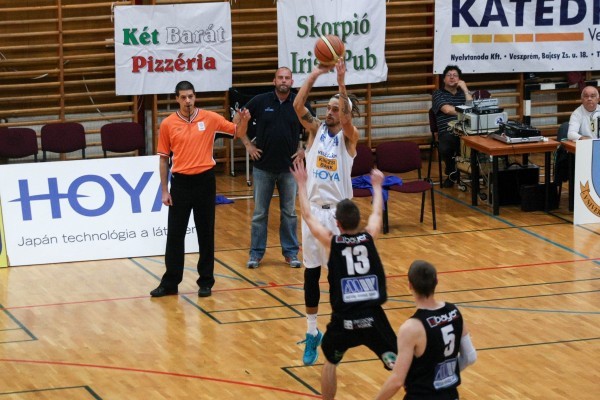 Büntetőpárbajjal kezdődött a találkozó, a csapatok egy ideig csak az egypontos-vonalról találtak be, miközben mindkét oldalon dupla- és triplakísérletek maradtak ki (5-2). Az ellenfél kezdeti lendületét és a mezőnybeli pontatlanságot Kámán Tamás törte meg, de a hazaiak akkortájt nem tűntek megilletődöttnek, kisvártatva újra vezettek (9-6). A vendégek ezúttal nem villogtak úgy, mint egy héttel korábban a bonyhádiak ellen. Sok személyi hibát gyűjtöttek be – az első percekben Novák Patrik hármat is –, több dobásuk nem ért célba, aztán ha hangyaszorgalommal is, de megfordították az állást (11-12). Ezt követően Körtélyesi Gergely is „felvette az üzemi hőfokot”, Kámán pedig futószalagon szedte a lepattanókat (11-16). A becsülettel harcolt egyetemisták közben újoncot is avattak, Kovács Dániel személyében. A következő negyedet jobban indították Sipos Ádámék, pontosabbak lettek és lendületbe jöttek, ami az eredményjelzőn is visszaköszönt (16-23). A különbség annak ellenére lett mind megnyugtatóbb, hogy a büntetőket jól dobó együttesünk nem tüsténkedett úgy, mint a nyitó fordulóban (20-30). Az irányítást persze kézben tartották, ráadásul a védekezésük is egyre határozottabbá vált. A fegyelmezett mieink az első félidőben csak öt labdát adtak el, s mert a dobóteljesítményük is folyamatosan javult – Körtélyesinek két triplája is gyűrűbe hullott –, a nagyszünetre megnyugtató, tizenhat pontos előnnyel vonulhattak (27-43).