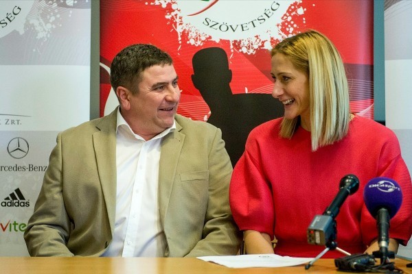 Elek Gábor és Ambros Martin a női kézis kapitány