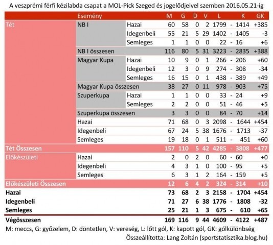 Ahogy az alábbi, Lang Zoltán által elkészített örökmérlegen is látható, eddig 116 győzelem és 9 döntetlen mellett 44 vereséget jegyzünk az ősi rivális ellen. Reméljük, hogy a szombati mérkőzést követően ismét a veszprémi oldal lehet a boldogabb!