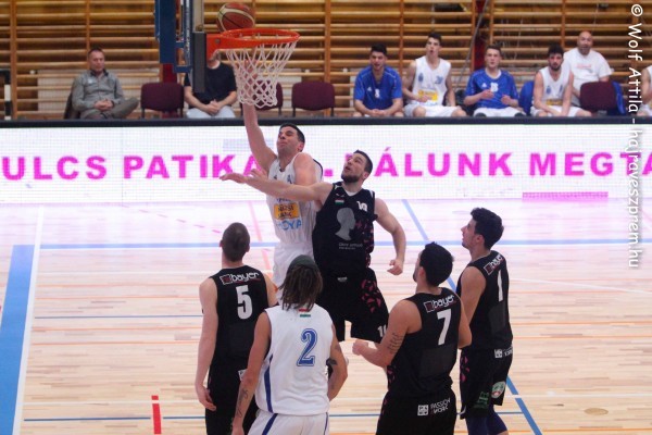 Már az első percek igazolták, hogy a másodosztályú ligában valamennyi idegenbeli mérkőzés nehéz (…még az esélyesebb csapatok számára is), eleinte ennek megfelelően alakult a „sorminta”: hol az egyik (2-0, 5-4), hol a másik gárda (2-3, 5-6) járt előrébb. A vendégek próbálták magukhoz ragadni a kezdeményezést, ám hiába védekeztek jól – s szereztek ily’ módon labdákat –, a másik térfélen rossz döntéseket hoztak, elmaradtak a könnyű kosarak (9-10). A hadszíntéren mindkét alakulat pontatlanul célzott, az egyetemisták ugyan megléptek Szabó Péter és Völgyi Marcell pontjaival (9-13), viszont a több lepattanó-labdát gyűjtött hazaiak szívósan tartották magukat, mi több, a vezetést is visszavették (14-13). A bakonyiak szempontjából a helyzetek kialakításával nem volt gond, „csupán” a befejezésekkel – bosszantó ziccerek maradtak ki (19-19). Egy ideig a folytatásban is valamivel akaratosabbnak tűnt az agresszíven, sok lábmunkával védekezett rivális (24-24). Egyéni villanások révén először talán huszonhét–huszonhétnél sikerült megtörni a bonyhádiak lendületét, jóllehet a veszprémiek gyors játékába továbbra is belecsúsztak baklövések (…a pályán nem mindig értették meg egymást), néha kapkodó és nehezen érthető volt az előadásmenetük (27-32). Az állás ezután három percig nem változott, majd Madár Andrásék ritmust váltottak és állva hagyták a másik oldalt (29-39). A derbi ezen periódusában jó felfogásban "tettek-vettek", dinamikusak és kombinatívak voltak (31-45). Az addiginál szigorúbb hátsó alakzatukkal mind több hibára késztették Pupp Bencééket, akik az első félidőben tizennégy labdát adtak el. A Hoya-mezesek szép lassan megnyugtató előnyre tettek szert, igaz, a kinti dobásokkal nekik is meggyűlt a bajuk.